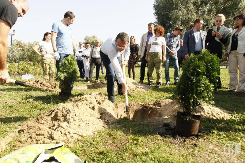 В канун визита в Чернигов Г.Корбан вышел с инициативой – сделать дополнительный взнос в озеленение и высадить 10 туй в честь погибших бойцов АТО. То есть заложить новую Аллею Героев. И не замешкался.