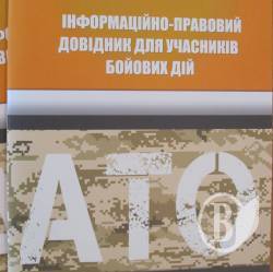 Крім того, окремі довідники розробили для членів родин загиблих та для учасників бойових дій (УБД). «У них міститься вся інформація щодо законодавства, про гарантії та пільги, гарантовані державою, алгоритм їх отримання, перелік необхідних документів, - пояснив Д. Науменко. – Довідники потраплять до обласного військкомату, де один з них видаватимуть разом із посвідченнями УБД».