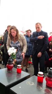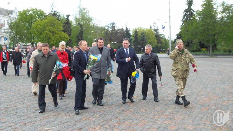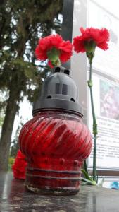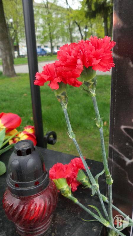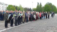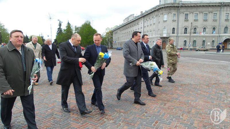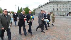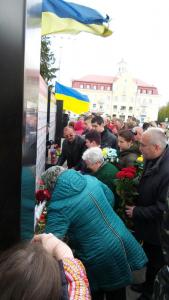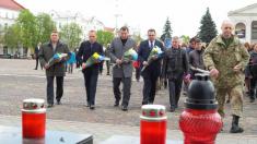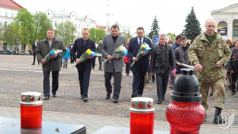 Вони поклали квіти до меморіальної стели військовослужбовцям Чернігівщини, загиблим в зоні АТО, та вшанували їх пам`ять хвилиною мовчання.