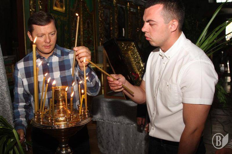 «Шановні земляки! Вітаю вас зі святом! У велике свято Трійці ми усі, і Дмитро Блауш, і вся моя команда, прийшли до цього древнього храму – храму Святої Трійці, щоб попросити у Господа миру для нашої країни, спокою в душах людей. І щоб ми жили достойно на своїй рідній землі!» – сказав після богослужіння Олег Ляшко.