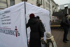 Рух «Справедливість» під час акції протесту в Ніжині також збирав заяви з вимогою притягти до суду владних босів, які переховують корупційні надприбутки за кордоном, в офшорах, а люди в Україні бідують.