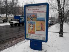 На рекламних площах розміщені постери з колажами із малюнків патріотичного та військово-патріотичного напрямку з двома загальними гаслами «Діти Чернігівщини вітають своїх захисників!» та «Моя Україна – єдина країна!».