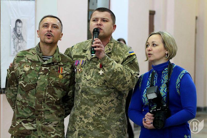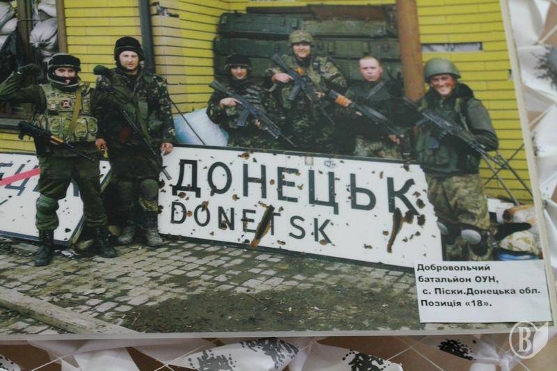 А ті, хто відвідає до суботи виставку, дізнаються: хто такі хлопці з добровольчого українського корпусу ОУН ( Організація українських націоналістів) та що вони роблять на війні з проросійськими найманцями в зоні АТО.