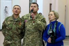 Прийшли бійці добровольчих батальйонів, комбат ОУН, волонтери, які возили і возять допомогу в зону бойових дій, родини бійців АТО.