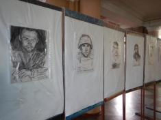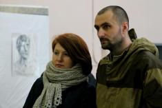 Бук розповів про художника, який малював олівцем всі портрети, які представлені на виставці. Показав фотопортрет цього художника - він сидить на зупинці в Пісках під Донецьком.