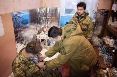 Відмінність саме цього модулю в тому, що тут облаштували куточок, де лікар матиме змогу провести медичний огляд та надати першу допомогу. Адже саме тут базується і штаб Першого добровольчого мобільного шпиталю ім. Миколи Пирогова, які активізували свої роботу та розширили штат одразу після перших обстрілів Авдіївки.