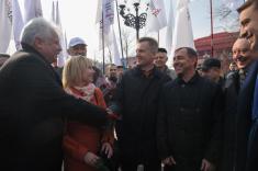 В урочистостях взяли участь Голова партії «Рух Валентина Наливайченка «Справедливість» Валентин Наливайченко, голова партії «Патріот» Микола Голомша, голова ВУТ «Просвіта» Павло Мовчан, громадські активісти, які приїхали в Київ з усієї України.