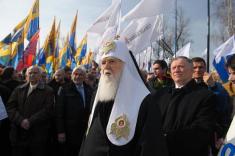 Митрополит Філарет освятив урочисте зібрання і закликав українців до єднання: «Історія свідчить, нас перемагали тоді, коли ми були не об'єднанні. Треба єднатися навколо української держави. Як казав поет «Об‘єднаємося, брати мої».