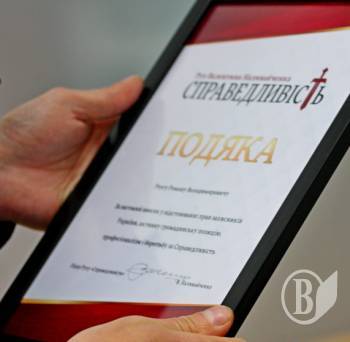 Заступник голови чернігівської «Справедливості» Володимир Березинський та керівник правого центру організації Олександр Приходько вручили подяки нотаріусам.
