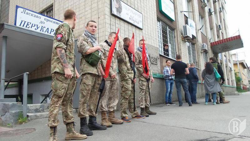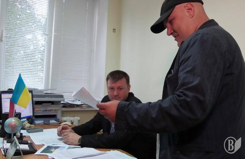 На фото: активісти у кабінеті заступника начальника – Вадима Потапенка
