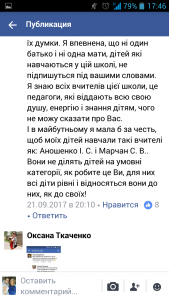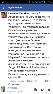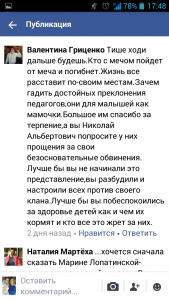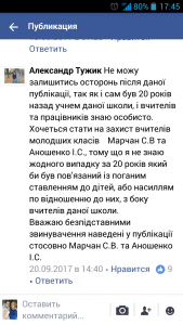 Не зважаючи на те, що вже минуло понад 2 роки, з якихось причин Микола Дубінін спочатку написав скаргу на вчителів початкової школи до районного відділу освіти. А не отримавши відповіді, яка його б влаштовувала, пішов далі, і розмістив звинувачення на своїх колег і керівника профільного відділу району у соціальній мережі Фейсбук.