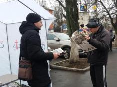 Вже традиційно, кожен бажаючий отримав газету «Справи справедливості». Люди радо цікавляться матеріалами в газеті та запитують про діяльність партії та лідера.