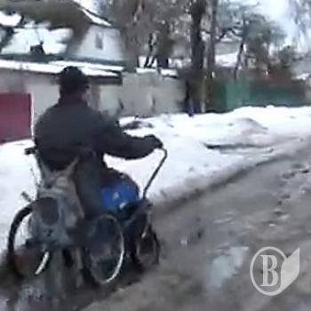 Крізь цей «апокаліпсис» чоловік, який живе поруч, долає шлях на своєму інвалідному візку.