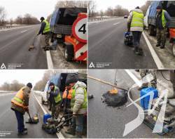 За допомогою холодного асфальтобетону на початку березня дорожники продовжують закривати найбільші аварійні вибоїни, що утворились на покритті після зимового періоду експлуатації. На трасі М-01 Київ - Чернігів - Нові Яриловичі від Кіптів до Ріпок працює чотири бригади.