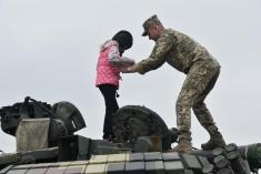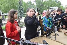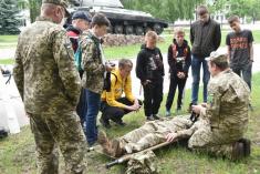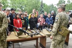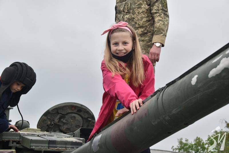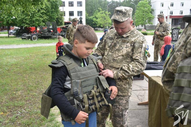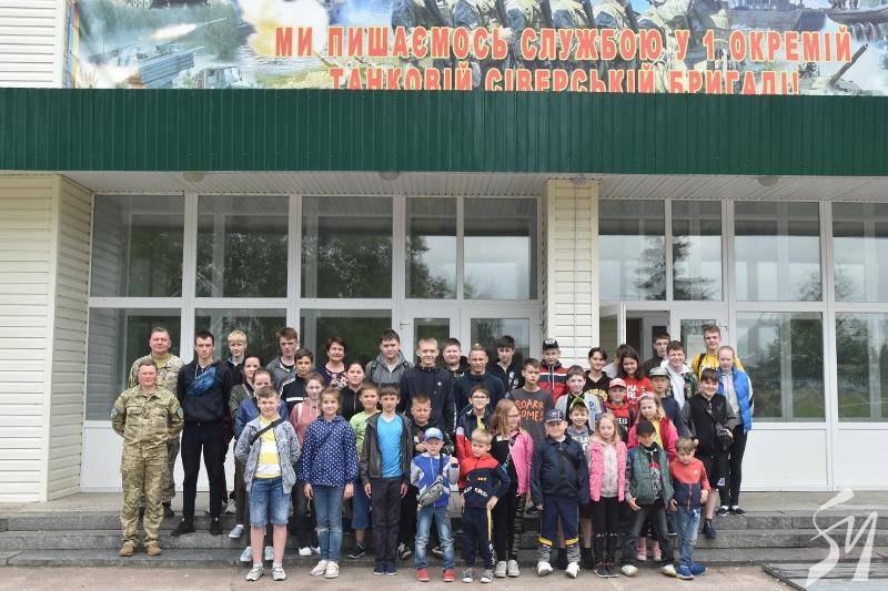 Майже пів сотні хлопців та дівчат з обласного центру провели день на території 1-ї окремої танкової Сіверської бригади у Гончарівському на Чернігівщині. Тут на п’яти локаціях діти ознайомилися з озброєнням, екіпіруванням, технікою та навіть харчуванням військових.