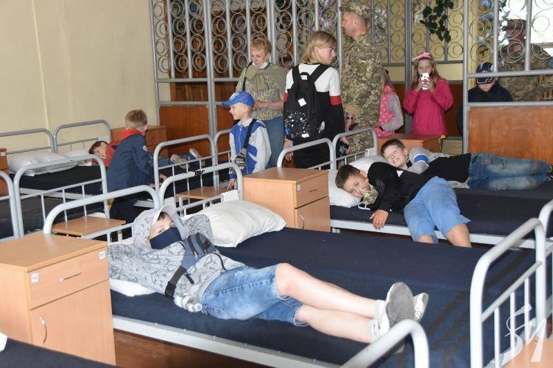 Наступною точкою ознайомлення з побутом військовослужбовців для дітей стала казарма. Тут більш старші хлопці добралися до спортивної кімнати, а менші були раді повалятися на солдатських ліжках та позаглядати у шафки.