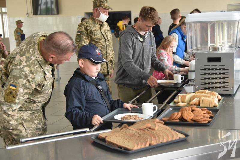 Логічним та «смачним» завершенням екскурсії стала нова їдальня. Діти не тільки побачили, де і як харчуються їх захисники, а й самі скуштували обід танкіста, приготовлений за новим каталогом харчування для особового складу.