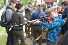 На другій локації хлопці та дівчата змогли власноруч розібрати та зібрати автомат, потримати кулемет, надягти бронежилет та каску, екіпіровку танкіста. Крім того, після теоретичної частини самостійно спробувати накласти джгут чи пов’язку на умовно поранену руку військового.