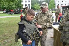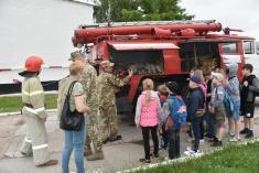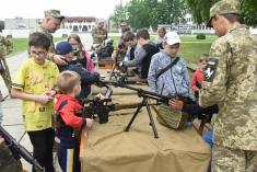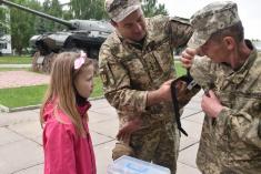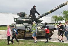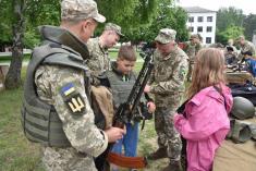 Військовослужбовці 1 окремої танкової Сіверської бригади показали дітям Чернігова, як вони несуть службу та живуть у військовому містечку.