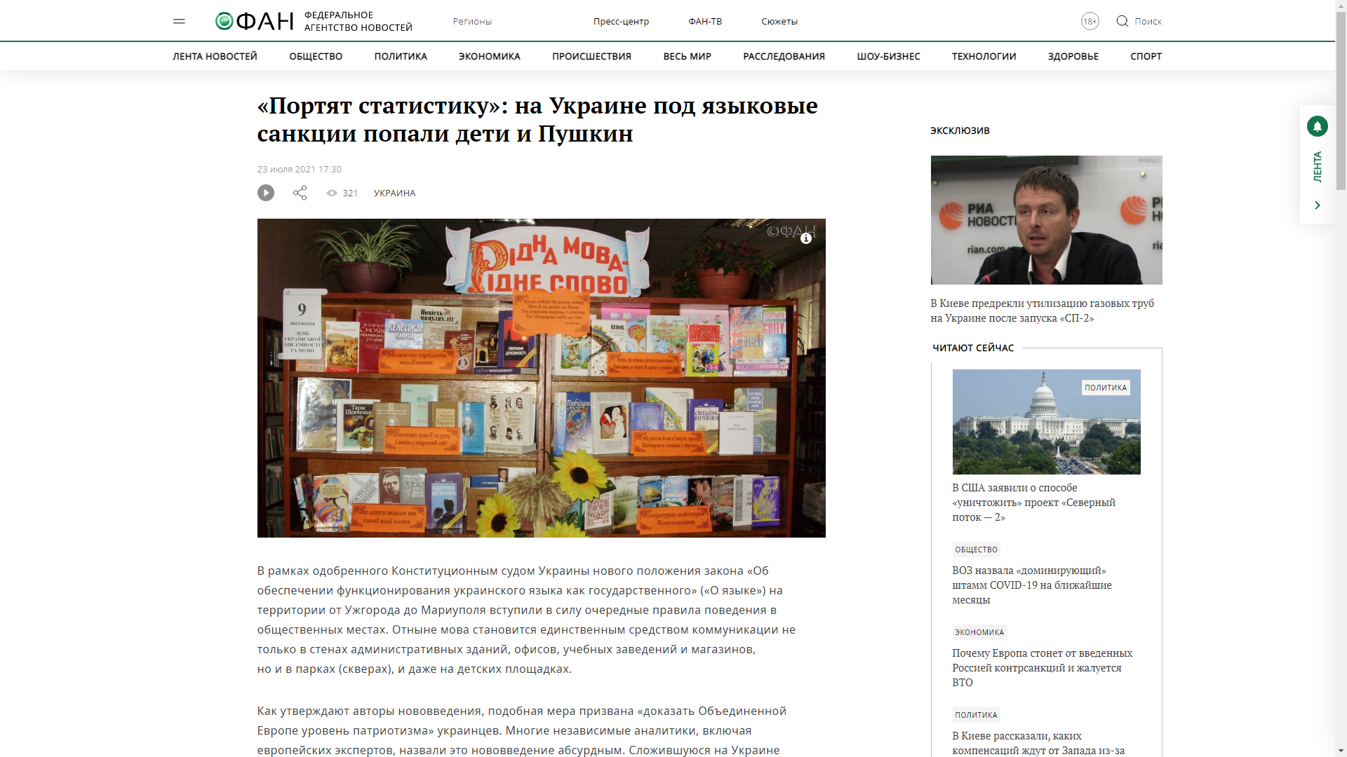 Кремлівський зливний бачок "ФАН" видав черговий смішний текст для людей з омбеженими розумово-лінгвістичними здатностями, у якому стверджує, що "на Українє" під мовні санкції потрапили діти і Пушкін.