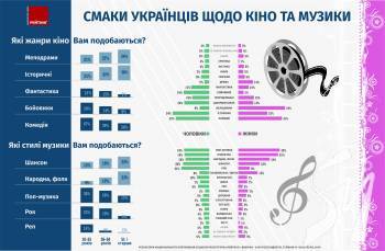 За результатами опитування, проведеного Соціологічною групою «Рейтинг» у вересні 2019 року, найулюбленішими стилями музики для українців є поп-музика (26%), класична (25%) та народна музика (21%), а також шансон (18%). Далі у рейтингу музичних вподобань рок (14%), танцювальна музика/диско (12%), клубна музика (8%) та джаз (7%). Реп, романси та духовну музику вибрали по 6%, електронну, блюз та хіп-хоп полюбляють по 4%, бардівську – 3%. Тяжкий рок популярний лише серед 2%, так само як і реггі. Лише 4% не люблять музику взагалі.