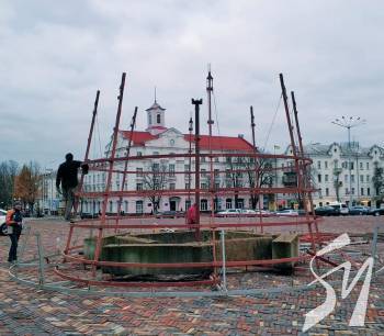23 листопада у Чернігові на Красній площі почали встановлювати новорічну ялинку.