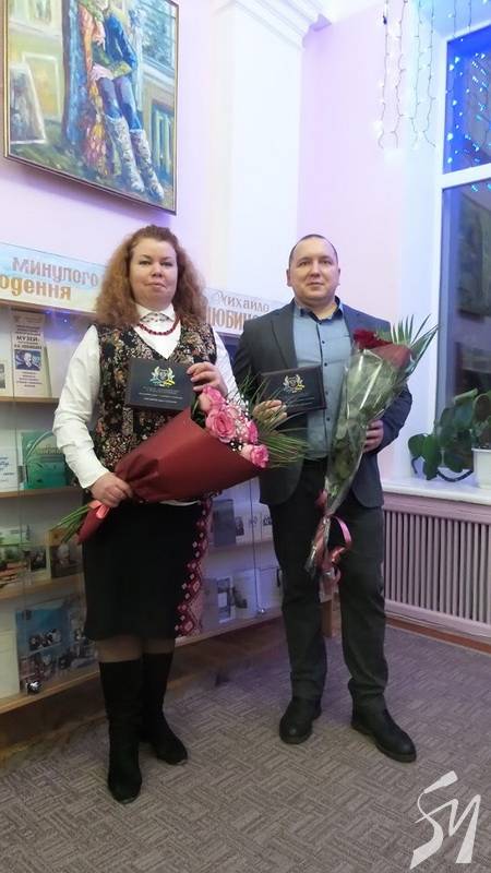 У бібліотеці ім. М. Коцюбинського вручили нагороди обласного конкурсу «Благодійник року» постійним меценатам бібліотеки – депутату Чернігівської обласної ради Олегу Заболотному та Ірині Березинець.