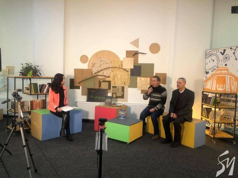 Вікторія УСПЕКОВА, ведуча цього заходу, співробітник Обласного молодіжного центру, у першій частині студійної зустрічі спілкувалася з Юрієм КОНОПЛЬОЮ, учасником Революції Гідності, який тоді вчився в одній зі шкіл м. Чернігів, а зараз магістрант Академії державної пенітенціарної служби України, юридичний консультант Чернігівського обласного молодіжного центру, та Сергієм СОЛОМАХОЮ, громадським діячем, борцем за незалежність України у 20 столітті, активним учасником Помаранчевої революції та Революції Гідності.