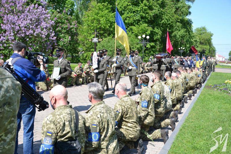 Чернігів прощався навколішки із бійцем, який загинув від кулі снайпера 13 травня