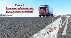 З вівторка, 1 червня, діятиме літнє обмеження руху для вантажівок. В період підвищення температури повітря понад 28°C на дорогах загального користування державного значення в межах області тимчасово обмежуватиметься рух вантажного транспорту вагою понад 24 тони та навантаженням на вісь більше ніж 7 тонн на період з 10:00 до 22:00 години.