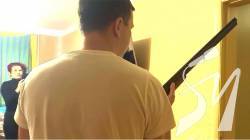 На інших кадрах, знятих у кімнаті, видно чоловіка з мисливською рушницею, а також жінку, яка знімає те, що відбувається, на мобільний телефон. Хто зняв це відео - невідомо.