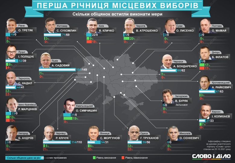 А от очільники Сум, Ужгорода, Полтави та Миколаєва не виконали протягом року жодної обіцянки.