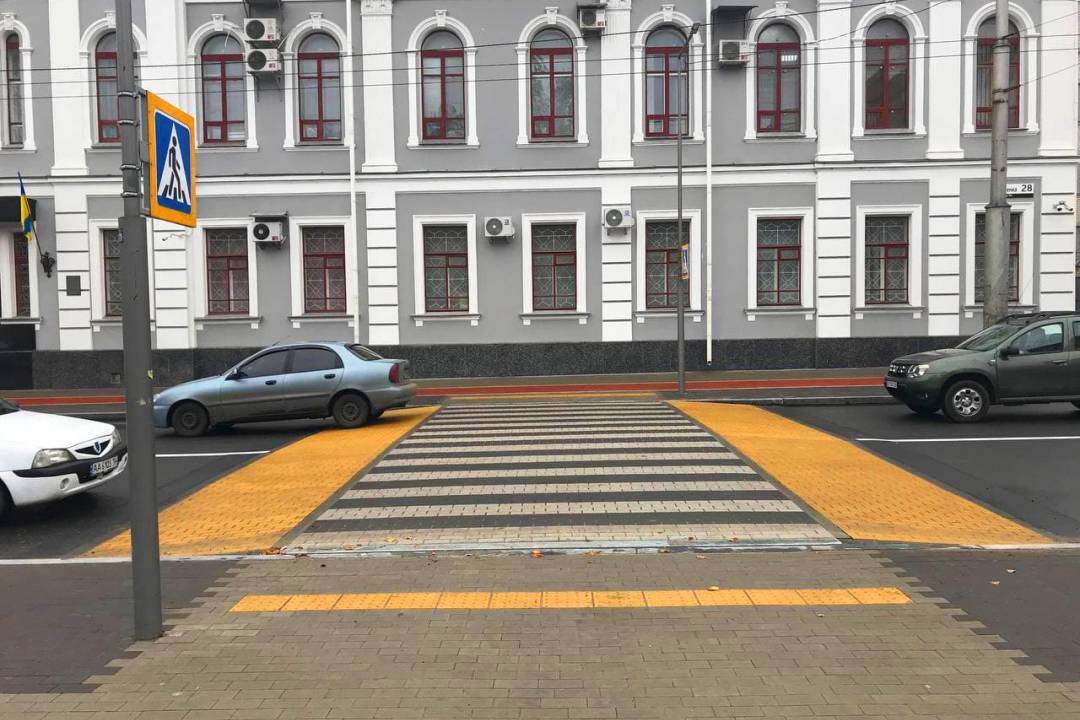 Ще один безпечний підвищений пішохідний перехід з'явився у Чернігові. На цей раз його збудували на вул. Шевченка, 28 - біля будівлі Управління служби безпеки України. Це вже п'ятий підвищений пішохідний перехід, збудований у жовтні місяці.