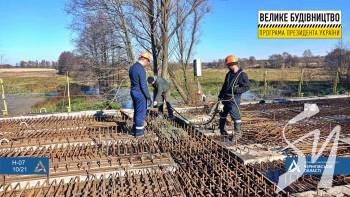 Продовжується реконструкція 46-метрового мосту через річку Лисогір поблизу села Олексинці на трасі Н-07 Київ - Суми - Юнаківка. Зараз підрядник бетонує другу опорну монолітну плиту прогонової будови. Роботи тут стартували наприкінці травня поточного року.