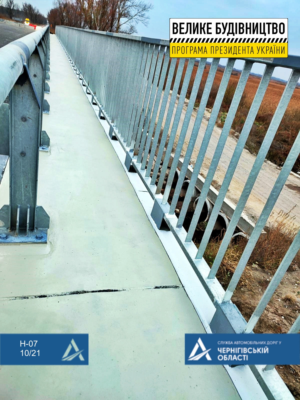 Оновлення мосту через річку Удай біля міста Прилуки на автомобільній дорозі Н-07 Київ - Суми - Юнаківка поступово виходить на фінішну пряму. Нова конструкція штучної споруди зведена, нанесений шар гідроізоляції, міст заасфальтовано. Зараз проводяться роботи по облаштуванню системи водовідведення та нанесення на пішохідній зоні антикорозійного покриття.