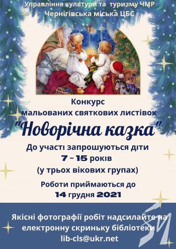 Чернігівська міська ЦБС запрошує дітей 7 - 15 років взяти участь у конкурсі святкових мальованих листівок "Новорічна казка".