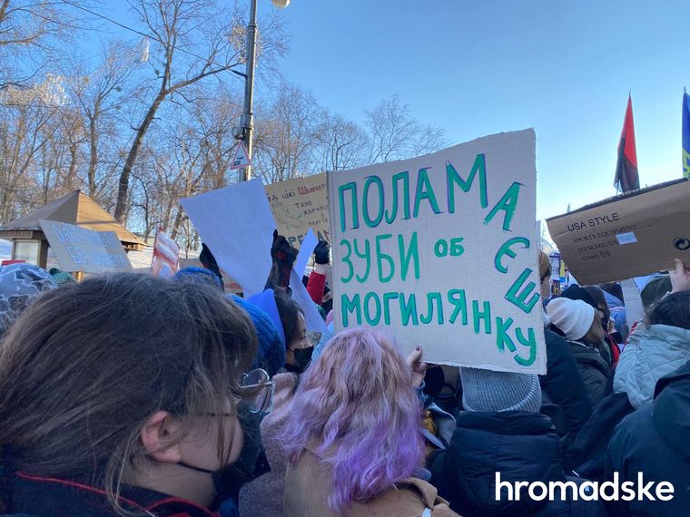 Люди на мітингу викрикують «Шкарлета геть!» і тримають у руках відповідні плакати. Відставки міністра на акції вимагають і студенти інших вишів, зокрема КНУ та КПІ.
