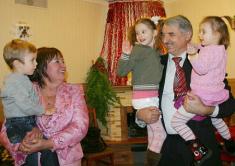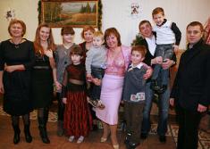 На вечеринке собралась целая батарея родных и близких: дети, зятья, невестки, сестра из Москвы и куча внуков.
