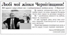 Привітання опубліковано в газеті «Деснянська правда. Вільна» від 6 березня 2010 року.