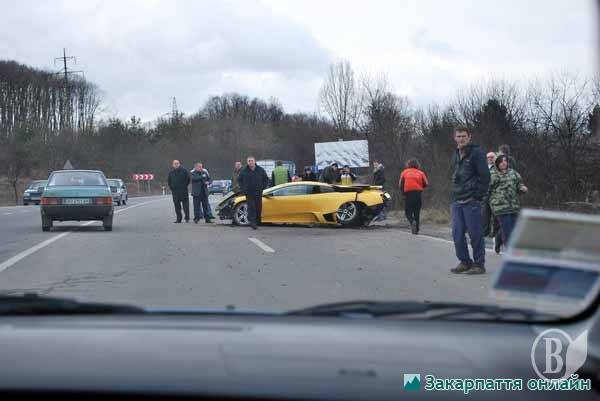 На об'їзній дорозі біля Ужгорода свідки сфотографували Lamborghini Murcielago LP640, що потрапила в ДТП. Автомобіль потрапив а аварію в мікрорайоні "Шахта", біля жвавого перехрестя, де розташований Ужгородський коньячний завод. Містом ходили чутки, що за кермом престижної іномарки був син високого київського чиновника. вихідця з Закарпаття. Та ж "Друга смуга" стверджує, що за кермом, ймовірно, перебував Андрій Стрижак, син голови КСУ Андрія Стрижака.