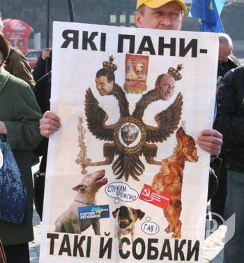 Украинофобскую выставку, которая имеет красноречивое название «Польские и еврейские жертвы ОУН-УПА», организовала так называемая ВОО"Русскоязычная Украина", возглавляемая «человеком с иммунитетом» - нардепом от Партии Регионов Вадимом Колесниченко.