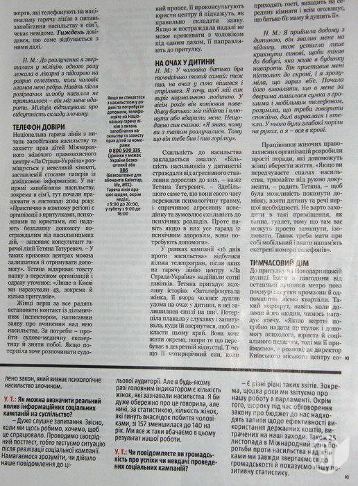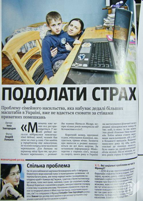 Використана для залякування й елементарна маніпуляція. Незважаючи на те, що журнал начебто «розрахований на освіченого читача». Чоловік пив і бив дружину. І, о жах – кидав у неї кам’яною черепашкою. У мене чомусь виникло гостре бажання подивитися в очі авторці разом з редактором і запитати: «То в чому ж тут проблема – в тому що чоловік б’є, чи в тому що п’є?!»