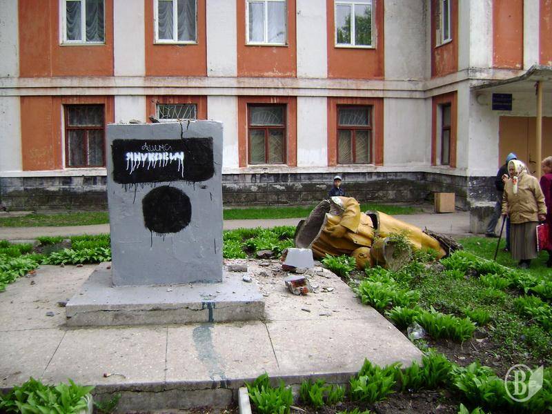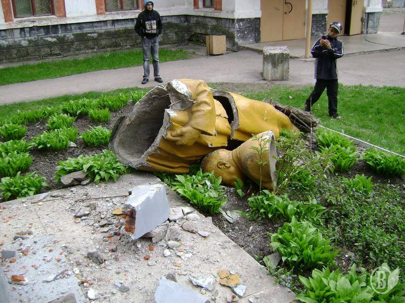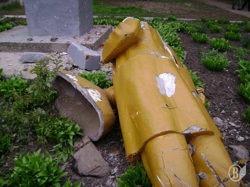 - У результаті негоди та сильного вітру, сьогодні вночі впав та розбився на частини черговий пам"ятник комуністичної доби кату Української Нації - Ульянову ("Лєніну"), який довго бовванів у районі "Шерстянка", - повідомила "Високому Валу" прес-служба Чернігівської обласної організації Конгресу Українських Націоналістів.