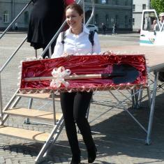 Іпровізований «азаровскій отряд піонєров» «відмовився» прийняти подарунок для Азарова – лопату, який зголосилася передати прем’єру присутня на площі депутат Верховної Ради Наталія Королевська.