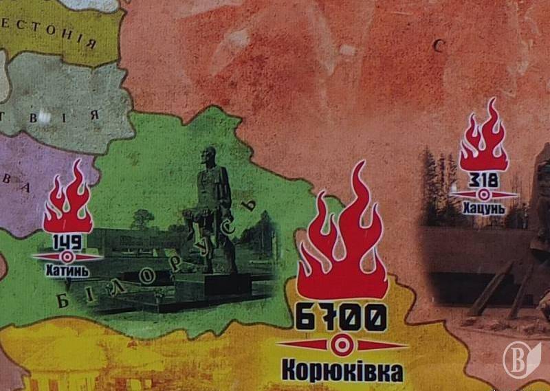 Тож, без сумніву, під пливом російської Хацуні і білоруської Хатині з’явився 22 вересня 2011 року указ Президента України «Про заходи у зв'язку з 70-ми роковинами Корюківської трагедії» (№ 925/2011). Цим указом доручалося Кабінету міністрів України розробити план заходів у зв'язку з 70-ми роковинами Корюківської трагедії», передбачивши, зокрема, «спорудження у місті Корюківка Меморіального комплексу пам'яті жителів населених пунктів України, знищених фашистськими окупантами та вирішити в установленому порядку питання щодо фінансування заходів у зв'язку з 70-ми роковинами Корюківської трагедії».