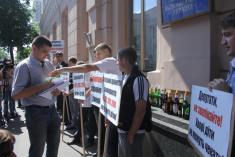 Громадські активісти у понеділок, 3 червня пікетували засідання Погоджувальної ради парламенту, вимагаючи включення до порядку денного сесії законопроектів № 2875, 2876, 2880, які передбачають підвищення акцизів на пиво та збільшення видатків на охорону здоров’я, насамперед – на завершення будівництва дитячої лікарні «Охматдит».