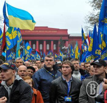 Партія всеукраїнське об’єднання «Свобода», як і обіцяла, зібрала 14 жовтня віче в парку Шевченка в Києві.