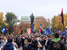 Партія всеукраїнське об’єднання «Свобода», як і обіцяла, зібрала 14 жовтня віче в парку Шевченка в Києві.