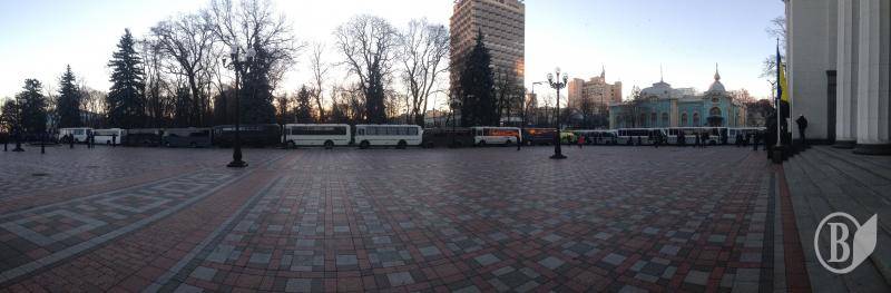 С 8:30 утра на площади под Верховной Радой полно митингующих как со стороны оппозиции, так и со стороны Партии регионов.