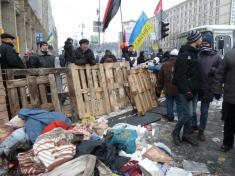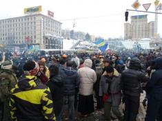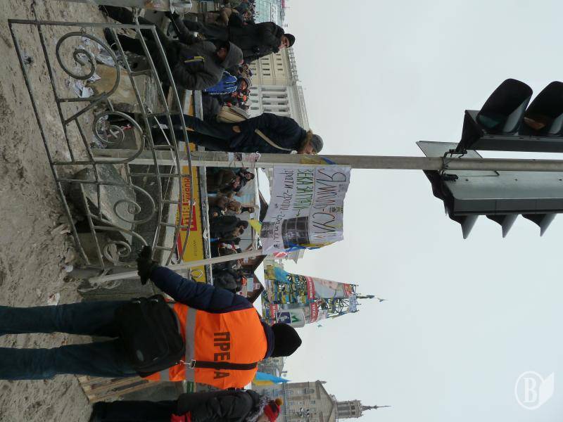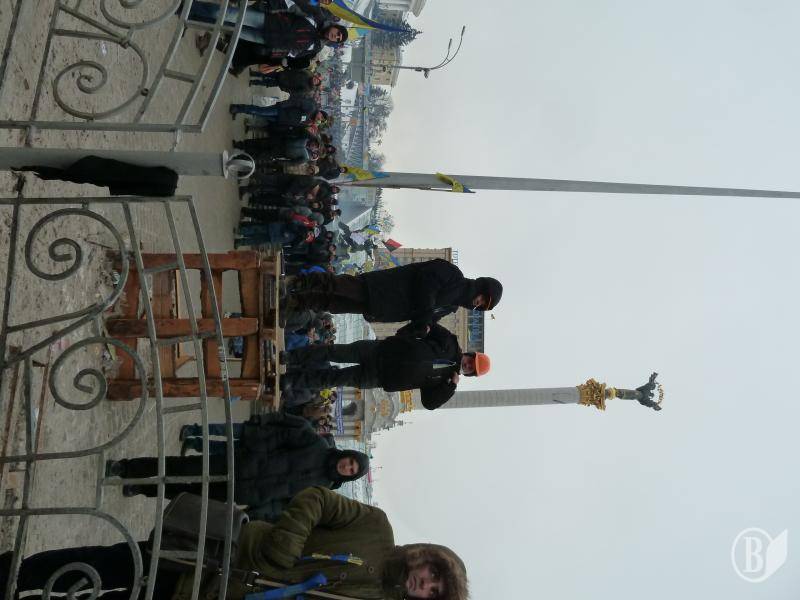 На Евромайдане также работает наш специальный корреспондент Олег Головатенко. Он предоставляет свой фоторепортаж, а также дежурит в пресс-центре Майдана.